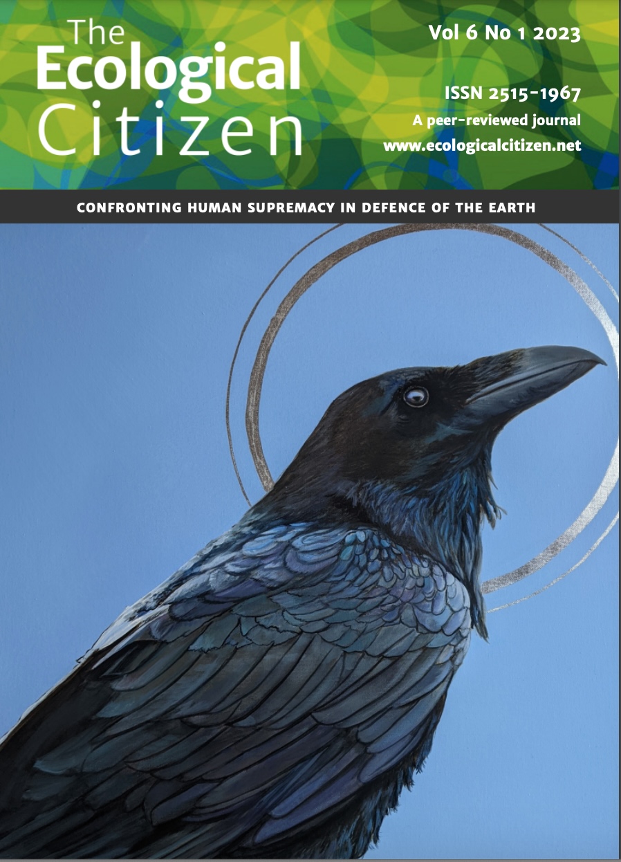 The Ecological Citizen is an independent, free-to-access, peer-reviewed, ecocentric journal. Broadly speaking, the publication covers ecocentrism and biocentrism, ecocentric and biocentric thinking, dark green ethics, deep ecology, conservation, wildlands, rewilding, Earth jurisprudence, Earth-centred law, and the Rights of Nature and Mother Earth. Topics explored in depth include: achieving large-scale protection, restoration and rewilding of air, land and water; rejecting the anthropocentric construction of nature as resources; designing and implementing steady-state economies; reassessing the connections between cultures and bioregions; superseding the paradigm of consumerism; stabilizing and then lowering the global population; increasing the sustainability of urban living; and rethinking food production.