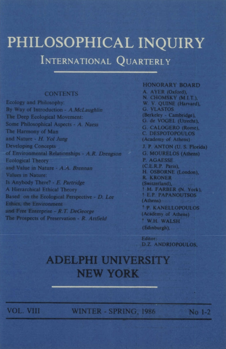 In this seminal 1986 article, Norwegian philosopher Arne Naess outlines the core principles of deep ecology, calling for a shift from human-centered to Earth-centered thinking. He contrasts “shallow ecology,” focused on pollution and resource use, with “deep ecology,” which affirms the intrinsic value of all life. Naess presents eight principles that advocate for ecological diversity, systemic change, and self-realization through identification with nature. This article became a foundational text in environmental philosophy and influenced the evolution of ecocentric ethics, environmental activism, and debates about the role of human beings within the broader natural world.