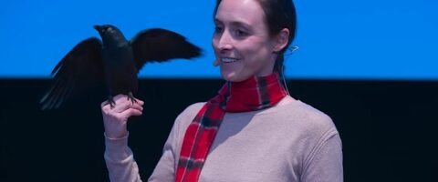 Despite expressions such as “bird-brain”, birds are very intelligent creatures. To demonstrate this, Auguste von Bayern brings Dohli, a jackdaw who is very close to her, on stage to be the first corvid ever to appear in a TEDx talk. She goes on to explain how certain bird species can innovate, reason, and even make novel tools to accomplish their goals–all with Dohli watching first from her shoulder and then from the back of the auditorium.