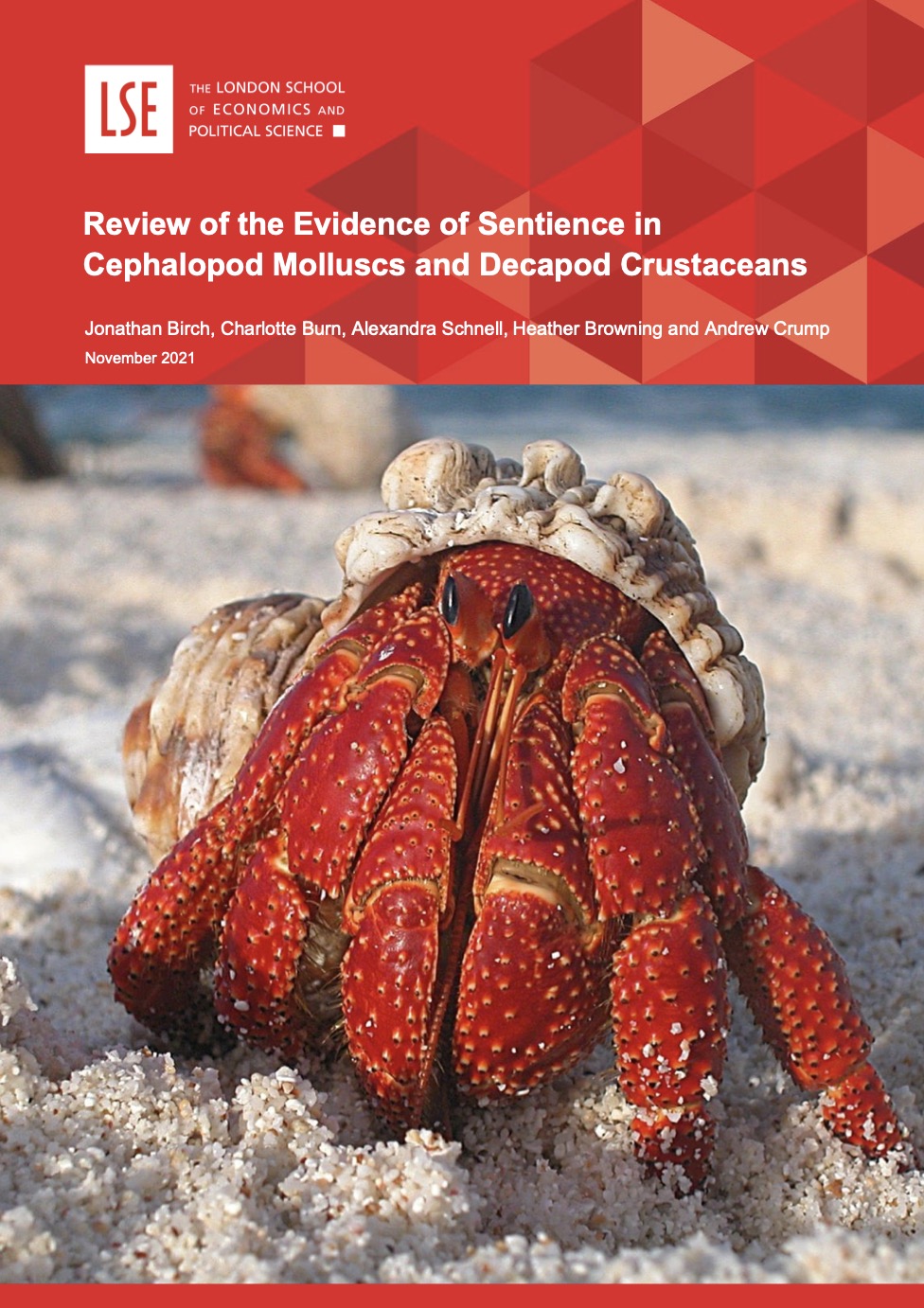 Birch and colleagues have developed an important and useful framework for evaluating the evidence for sentience–namely, the capacity to experience pain, distress and suffering, in cephalopod molluscs (cuttlefish, octopods and squid) and decapod crustaceans (including crabs, crayfish, lobsters, prawns, shrimps). Birch and colleagues develop eight criteria in their evaluation framework which are used to weigh the evidence from over 300 scientific publications. The report also investigates the potential welfare implications of current commercial practices on these species. The report concludes that cephalopods and decapod crustaceans are probably sentient.