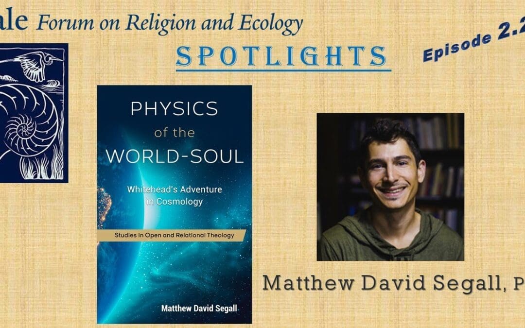 This episode of Spotlights features Matthew David Segall, Assistant Professor of Philosophy and Religion at the California Institute of Integral Studies. He discusses his new book, Physics of the World-Soul: Alfred North Whitehead’s Adventure in Cosmology (SacraSage Press, 2021), describing the context and key concepts of Whitehead’s process philosophy. Sam Mickey and Matthew reflect on Whiteheadian contributions to debates on a variety of topics, including panpsychism, panentheism, environmental ethics, dialogue between science and religion, and the future of philosophy.