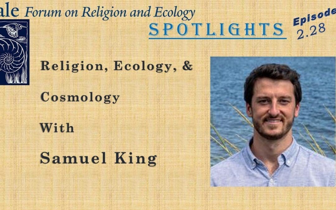 This week’s episode of Spotlights features Samuel King, a Research Associate for the Yale Forum on Religion and Ecology and a graduate student in Religion and Ecology at Yale Divinity School. Sam discusses many facets of his work, including his experience teaching courses in philosophy, religion, and interdisciplinary humanities, his creative writing practice, and his time studying environmental practices in Sri Lanka and India. He also talks about his work with the Journey of the Universe project, including a podcast reflecting on developments in the last ten years since the film and book were released, “JOTU: 10 Years Later.” He also elaborates on his contributions to the development of Massive Open Online Courses (MOOCs) in Religion and Ecology.