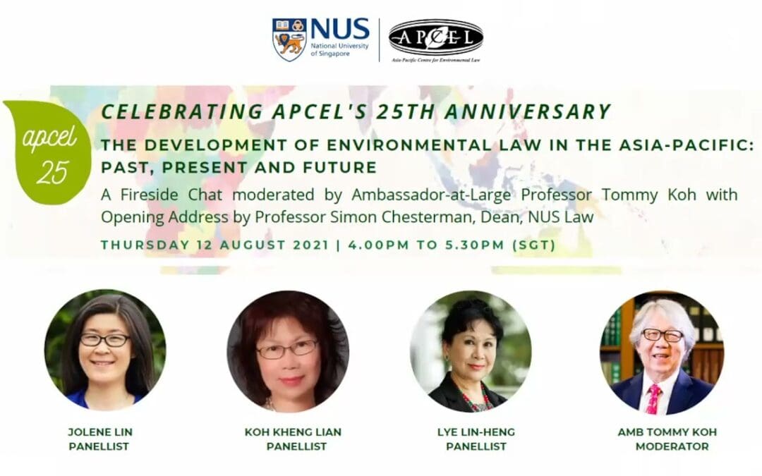 This fireside chat, chaired by Professor Tommy Koh on 12 August 2021, reflects on the 25-year journey of the Asia Pacific Centre for Environmental Law (APCEL) at the National University of Singapore. Founding and current directors discuss APCEL’s origins, its role in regional capacity building, and its ongoing influence in shaping environmental law and education. The panel explores key developments in international environmental law, the rise of climate litigation, gaps in governance, and the urgent need for legal tools to meet today’s environmental challenges.